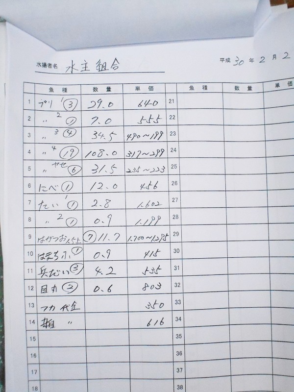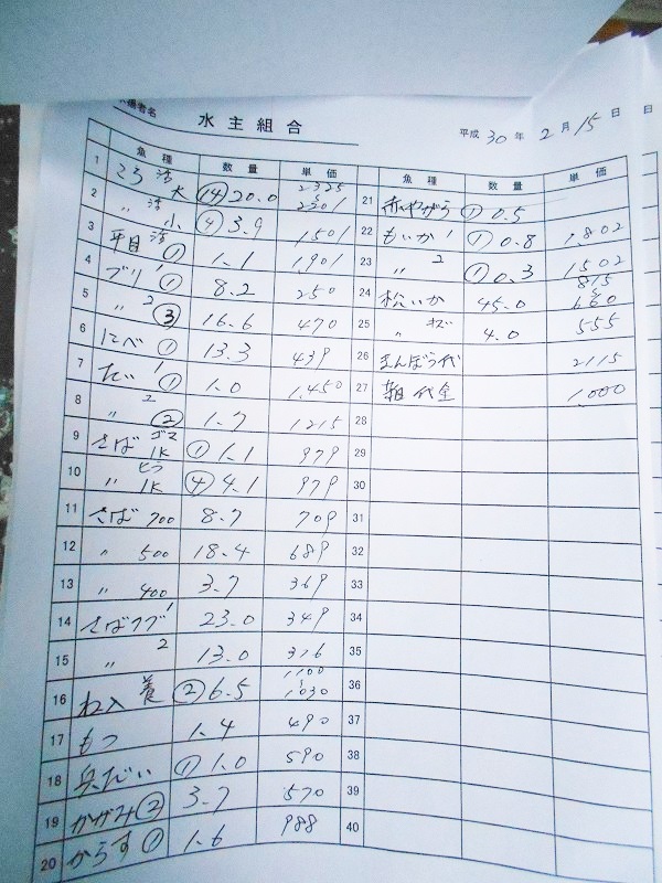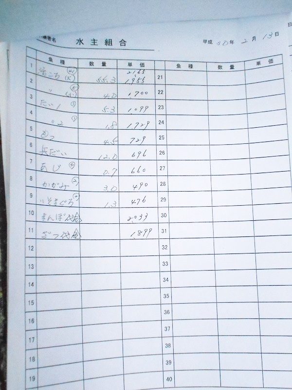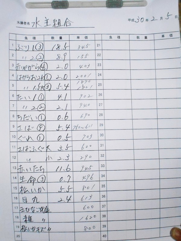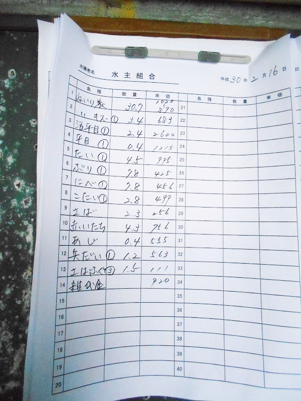 古満目漁港落札価格 | 2018.02.19 Mon 16:55