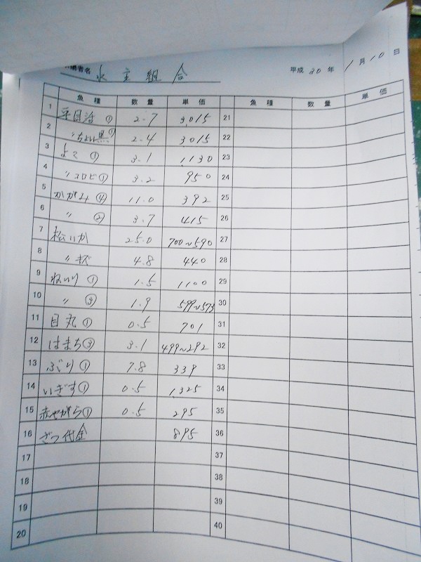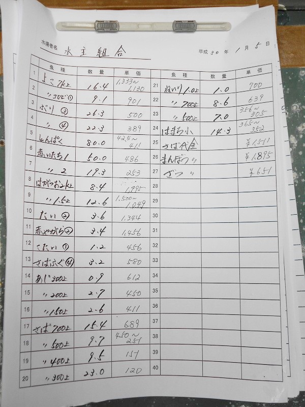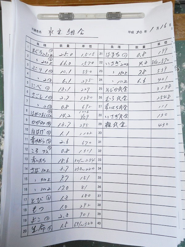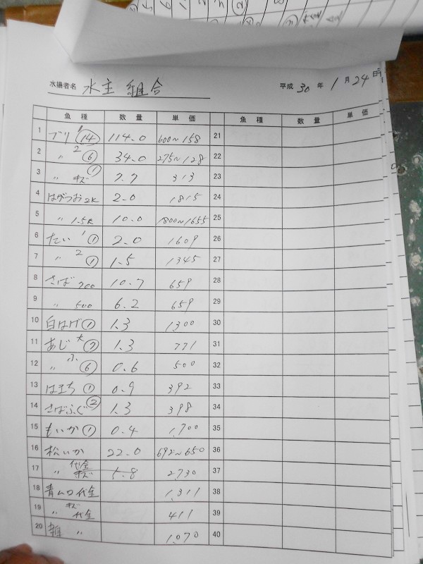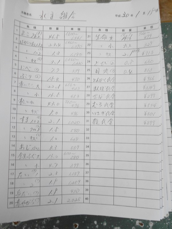 古満目漁港落札価格 | 2018.01.16 Tue 22:53