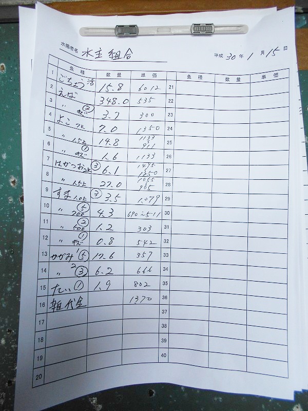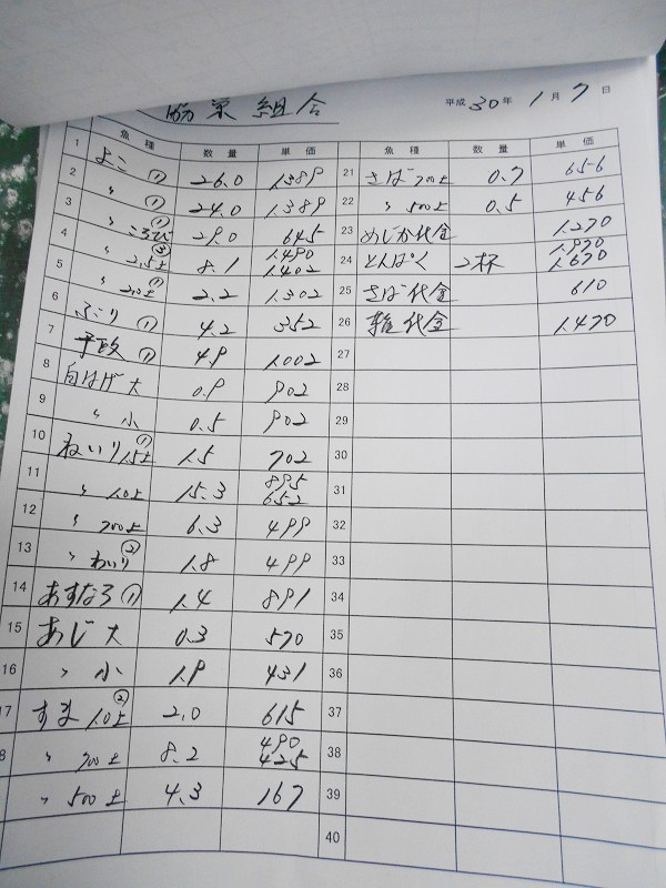 古満目漁港落札価格 | 2018.01.14 Sun 21:04