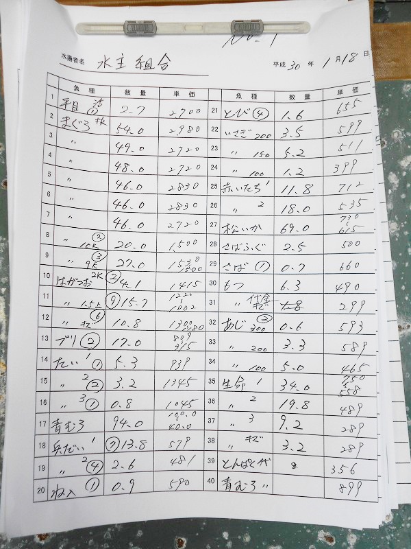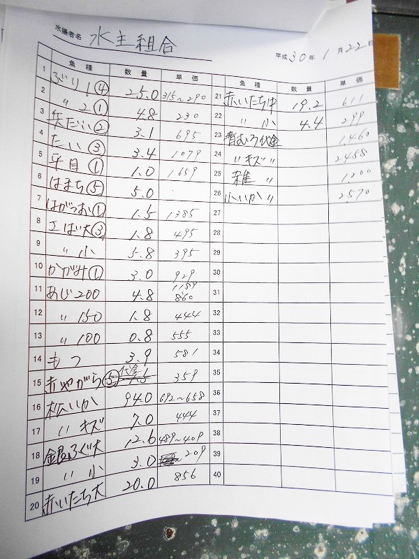 古満目漁港落札価格 | 2018.01.18 Thu 20:58