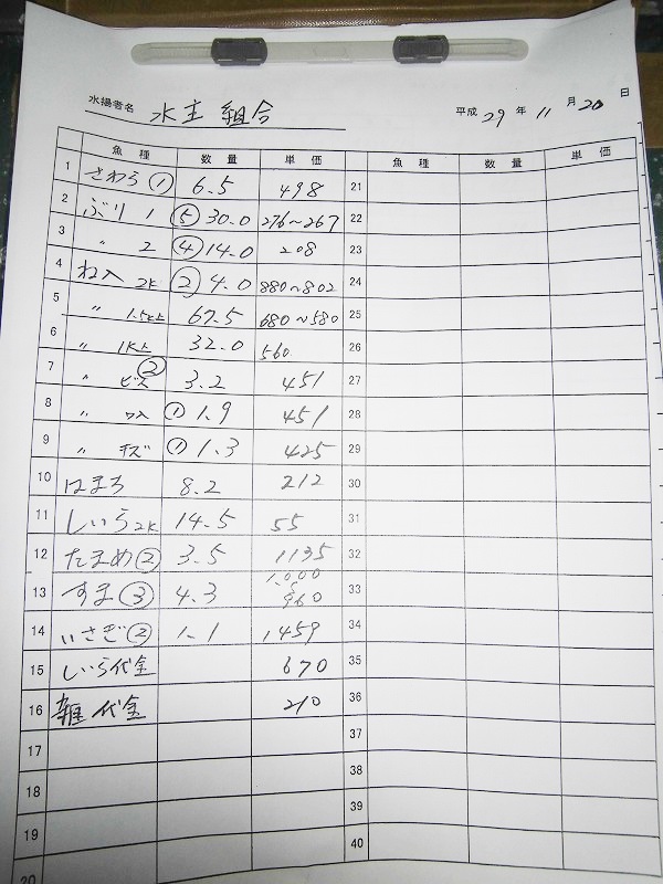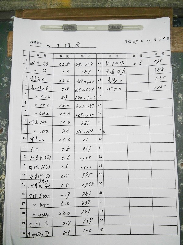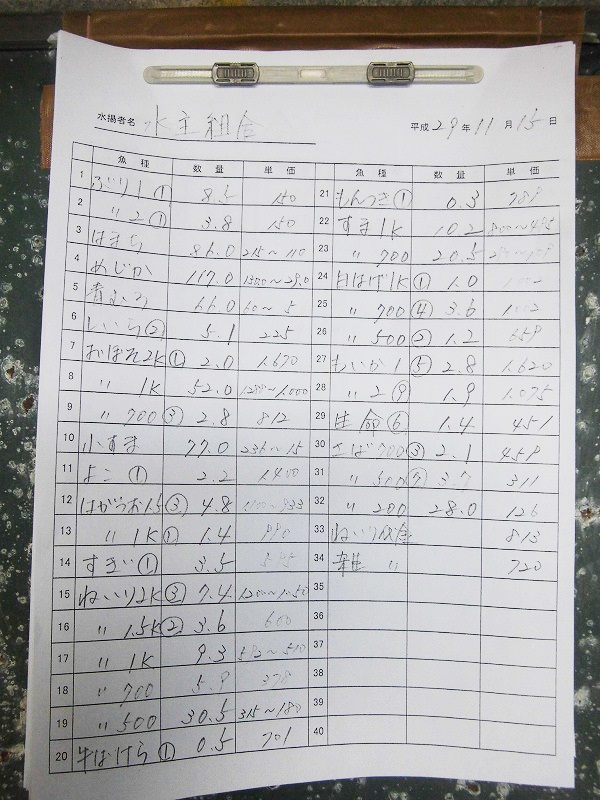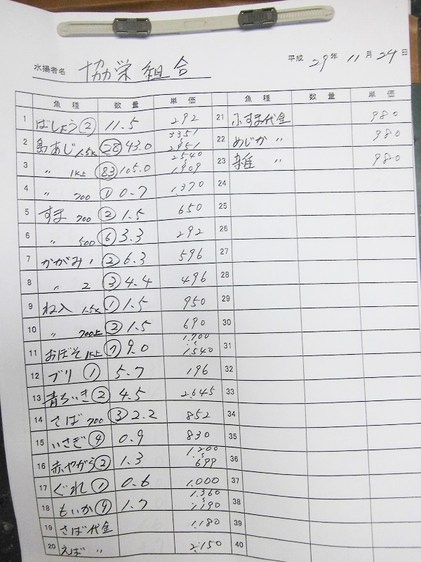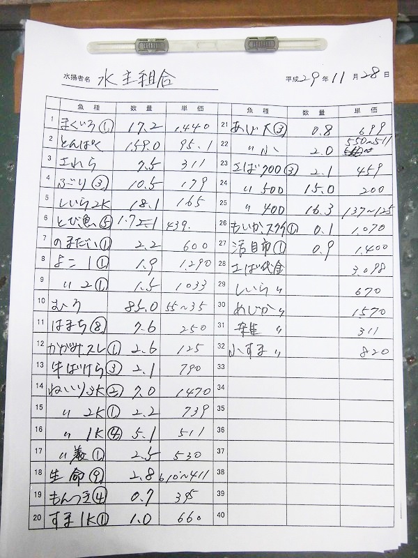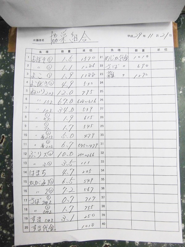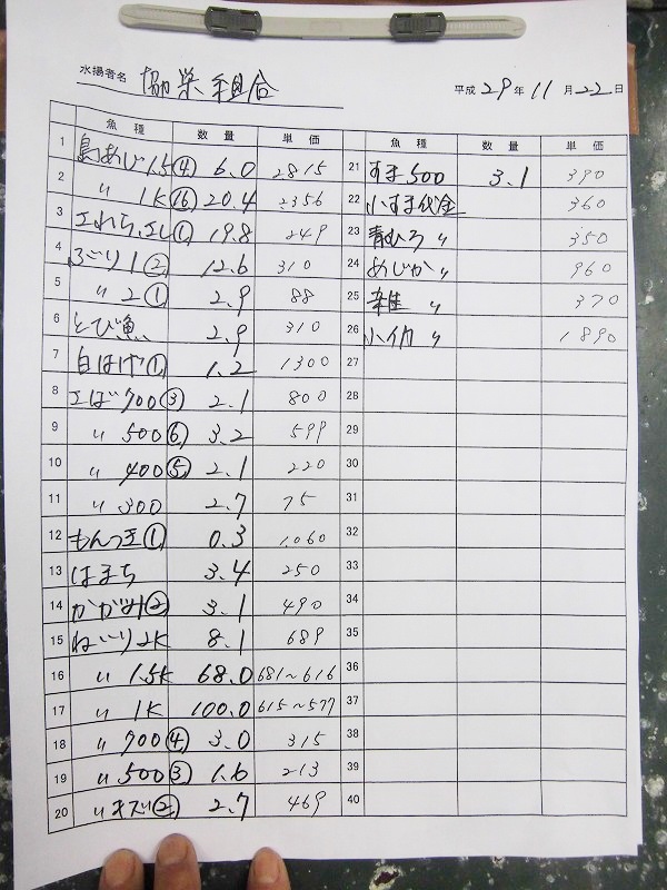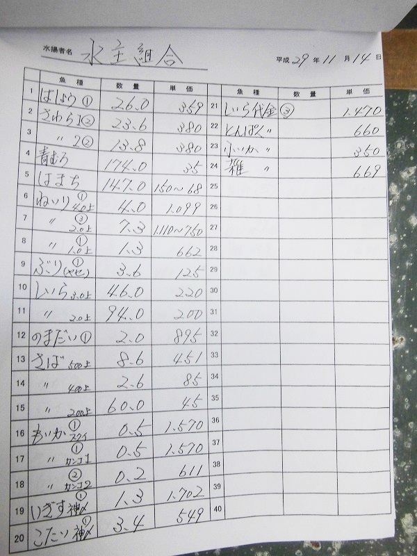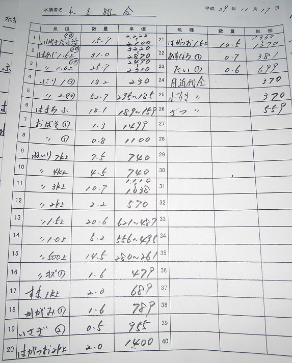 古満目漁協落札価格 | 2017.11.29 Wed 19:23