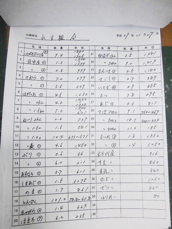 古満目漁協落札価格 | 2017.11.27 Mon 21:05