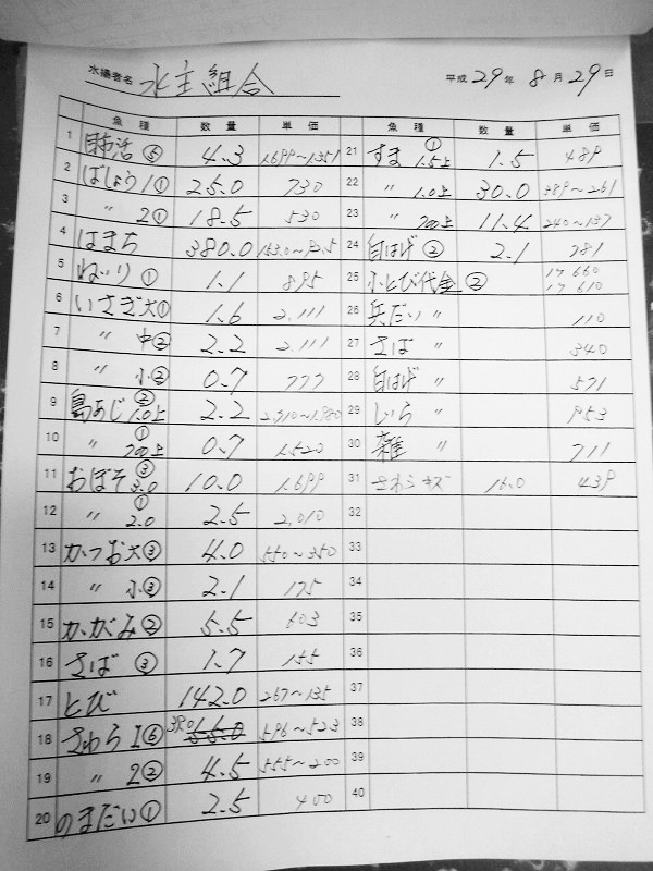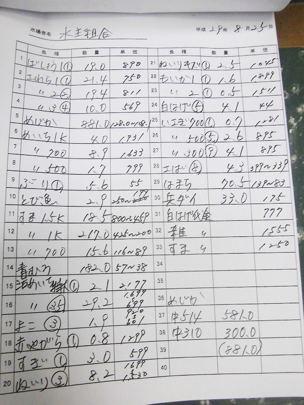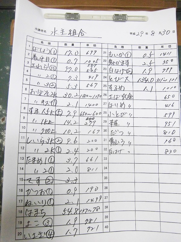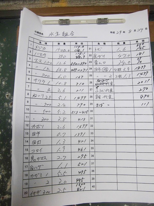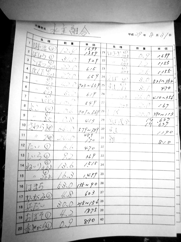 古満目漁協落札価格 | 2017.08.29 Tue 16:45