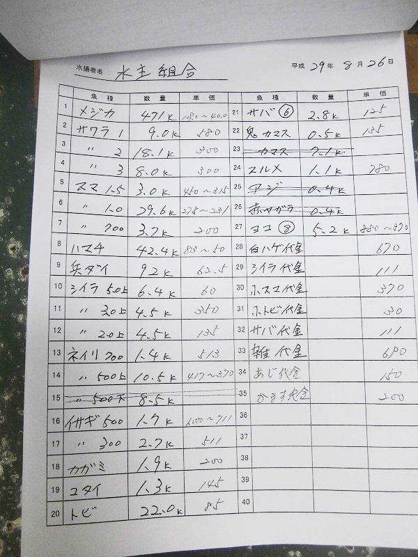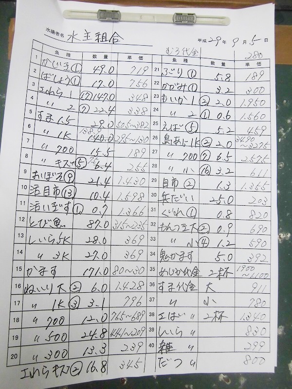 古満目漁協落札価格 | 2017.09.04 Mon 22:09
