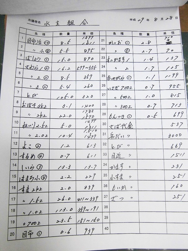古満目漁協落札価格 | 2017.09.04 Mon 21:52
