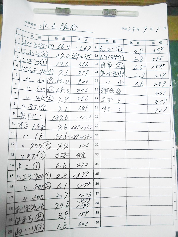 古満目漁協落札価格 | 2017.09.04 Mon 22:00