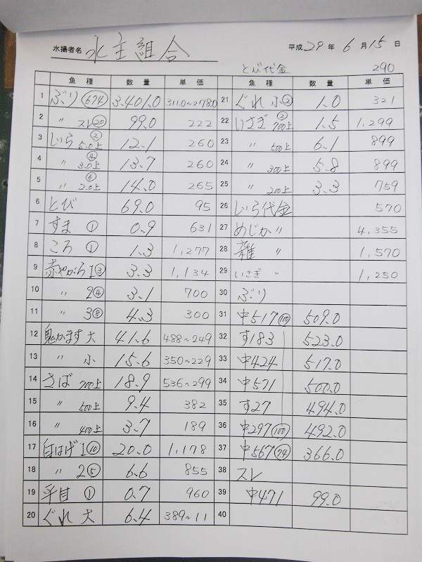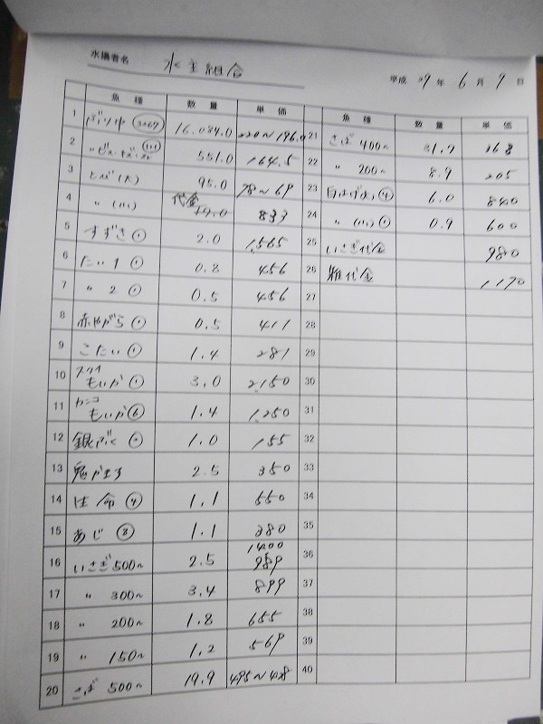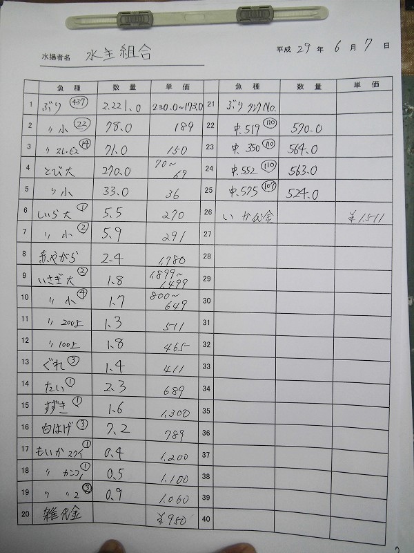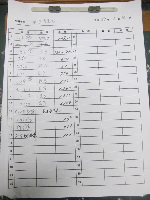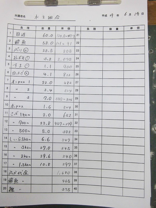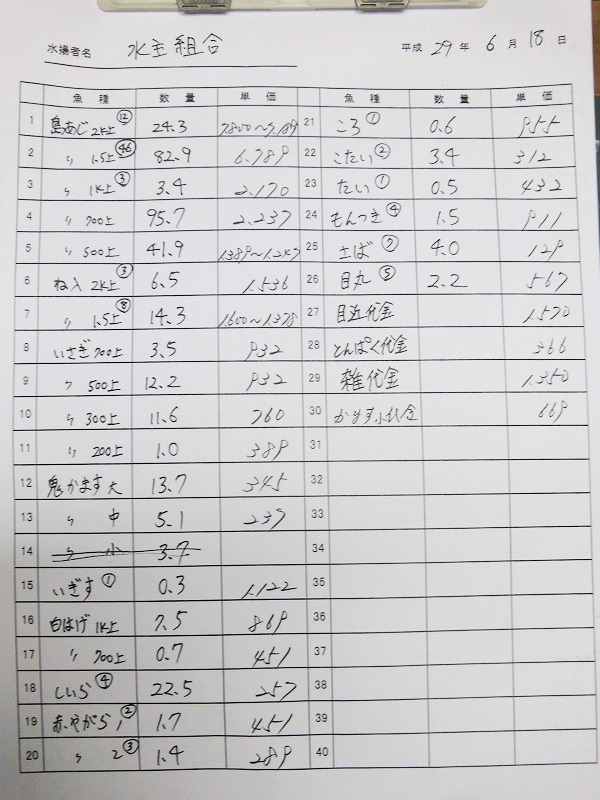 古満目漁協落札価格 | 2017.06.20 Tue 21:33