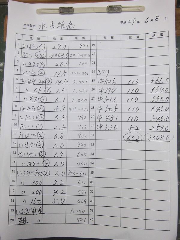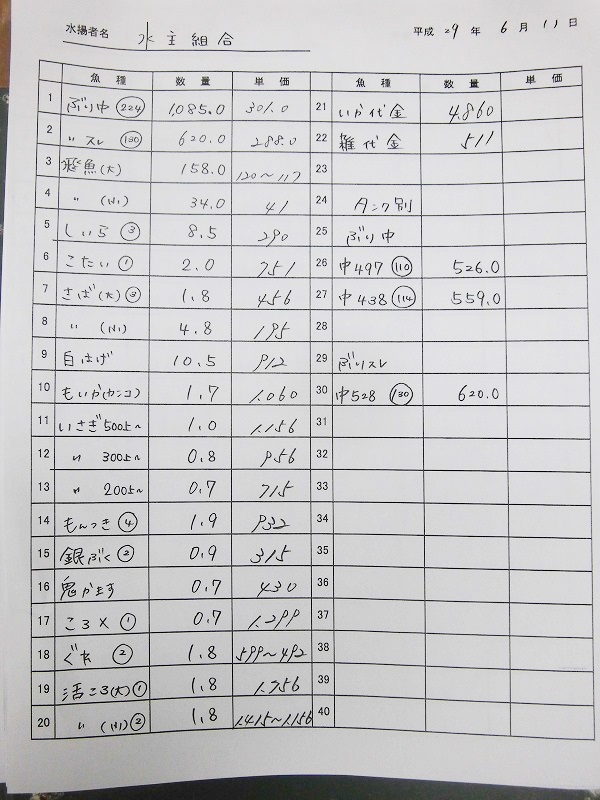 古満目漁協落札価格 | 2017.06.08 Thu 10:01