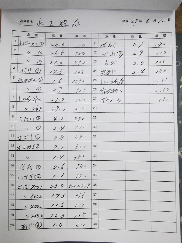 古満目漁協落札価格 | 2017.06.11 Sun 23:08