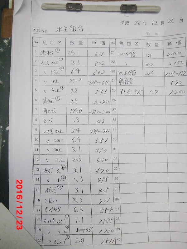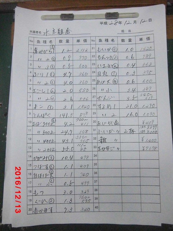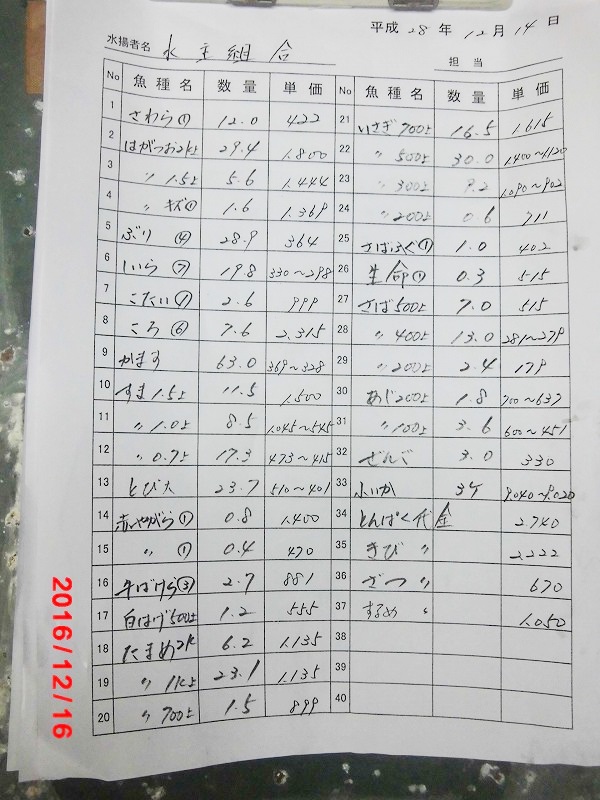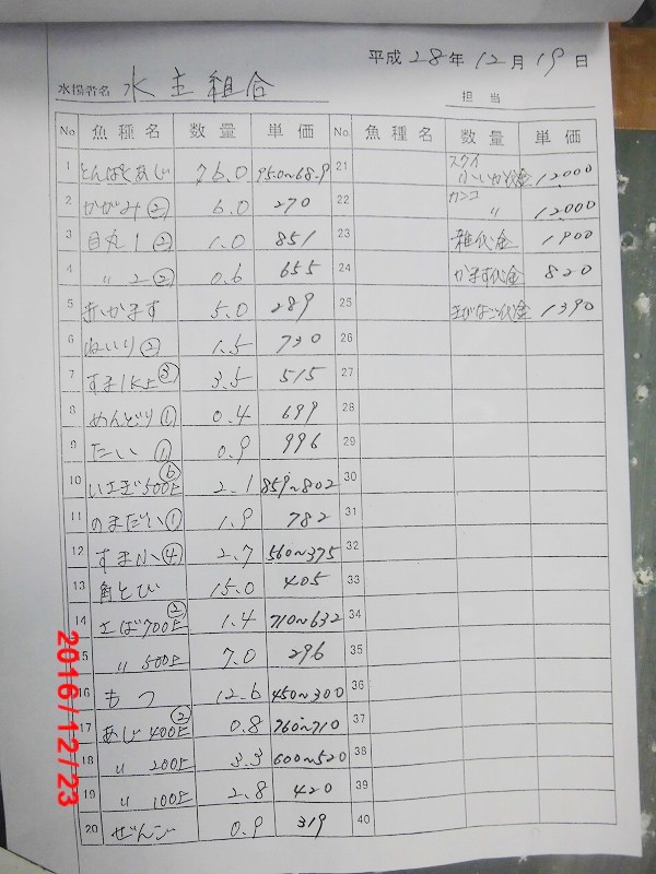 古満目漁協落札価格 | 2016.12.11 Sun 16:21