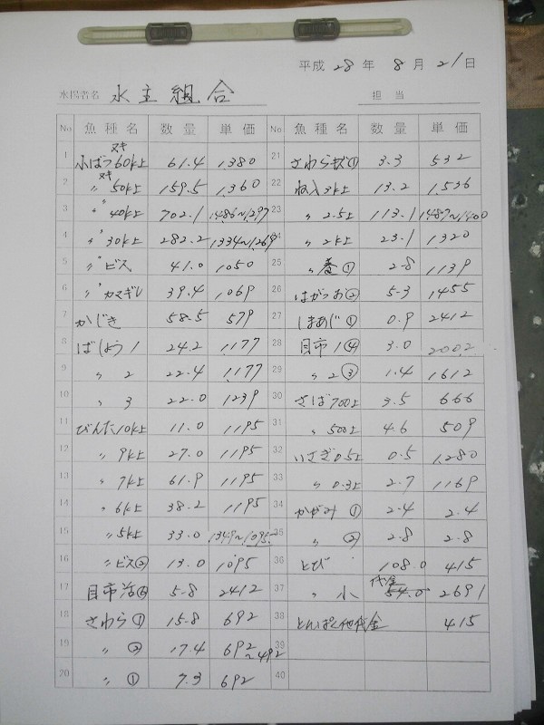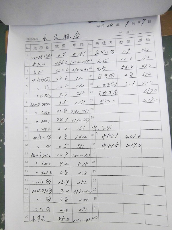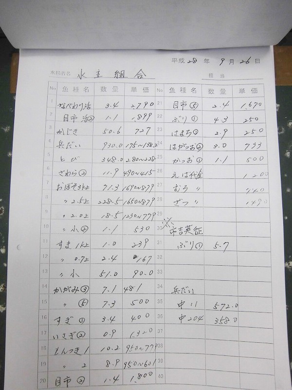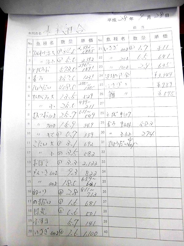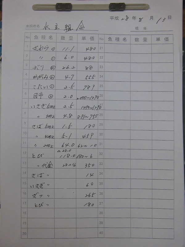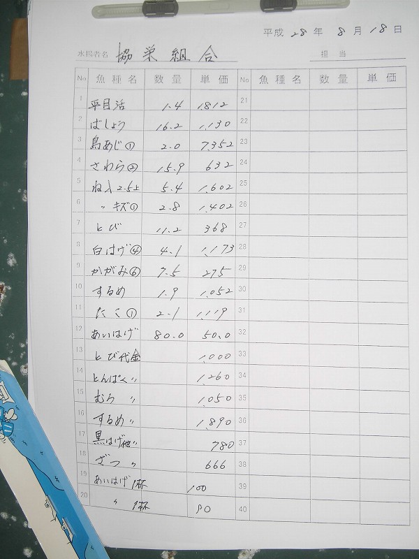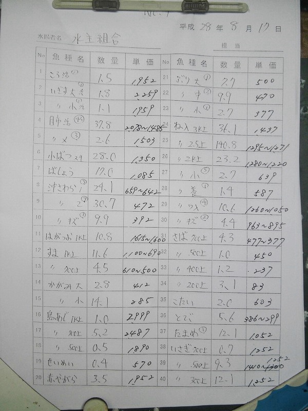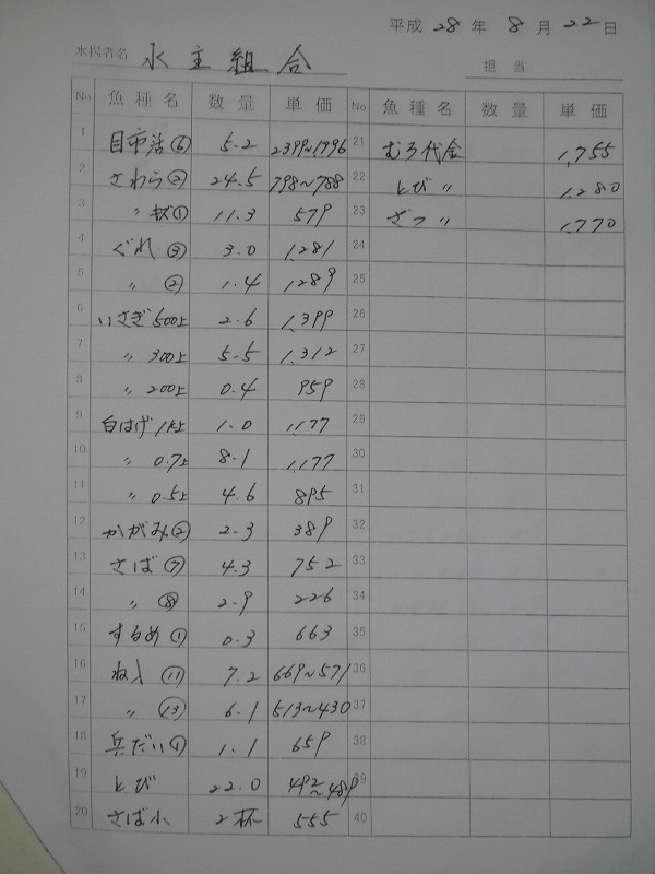 古満目漁協落札価格 | 2016.08.23 Tue 22:24
