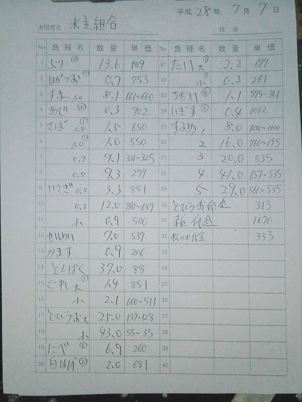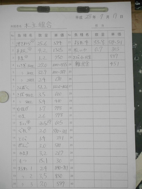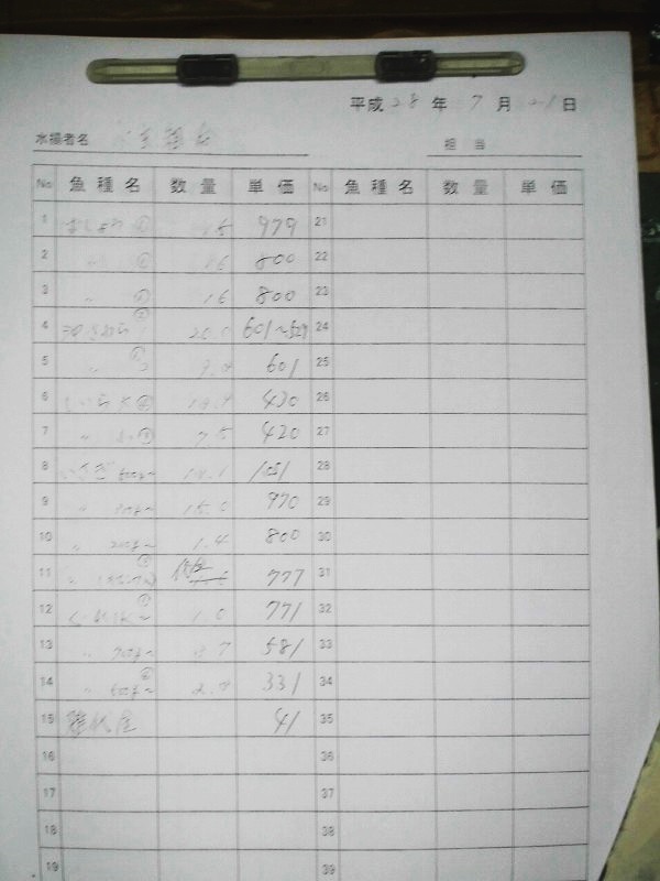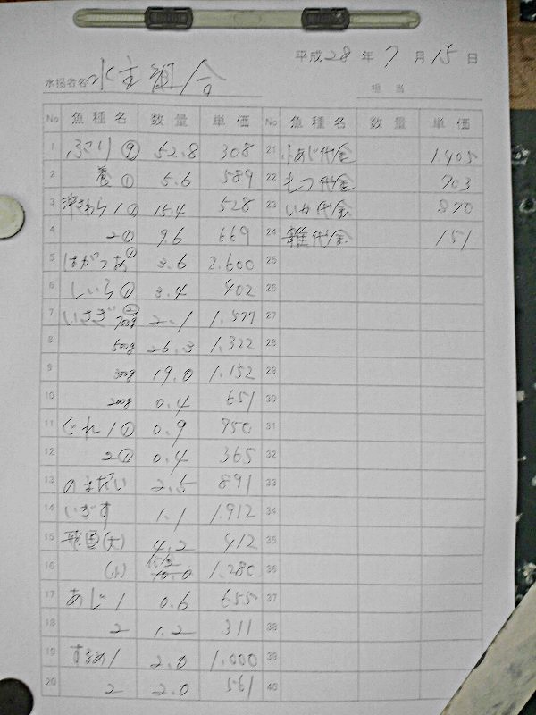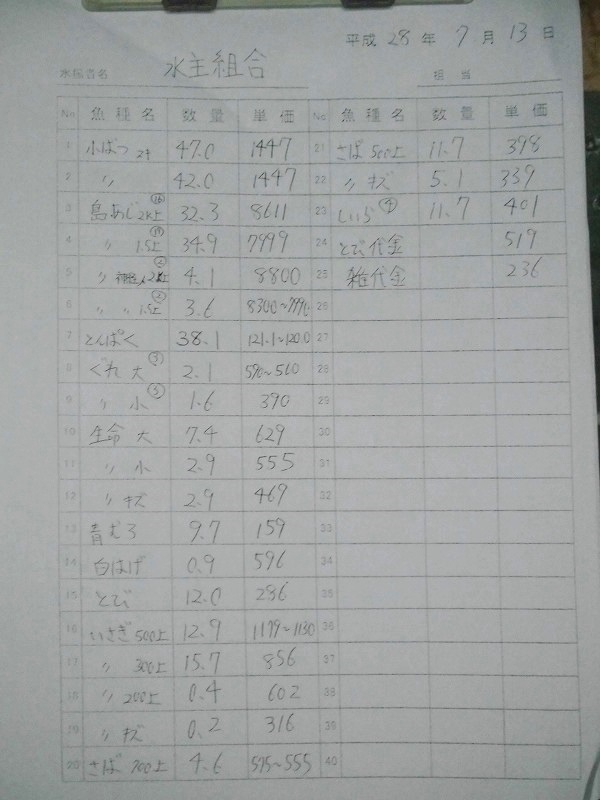 古満目漁協落札価格 | 2016.07.08 Fri 19:42
