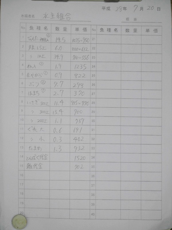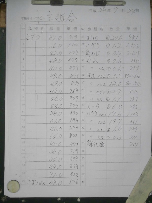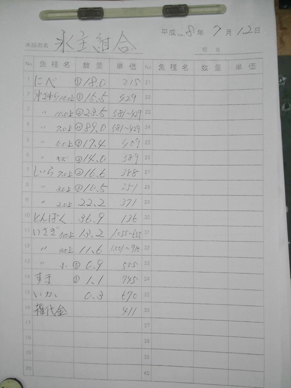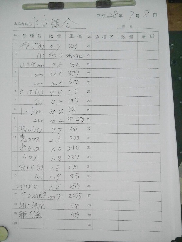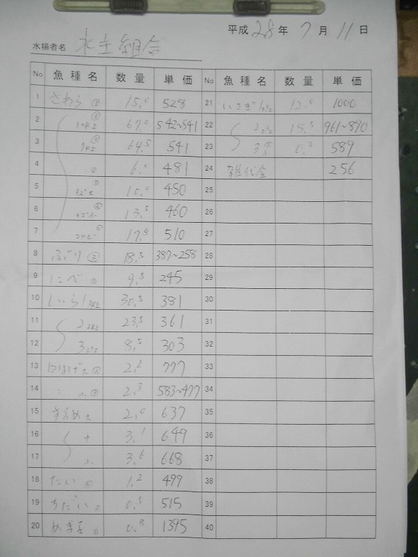 古満目漁協落札価格 | 2016.07.12 Tue 08:45