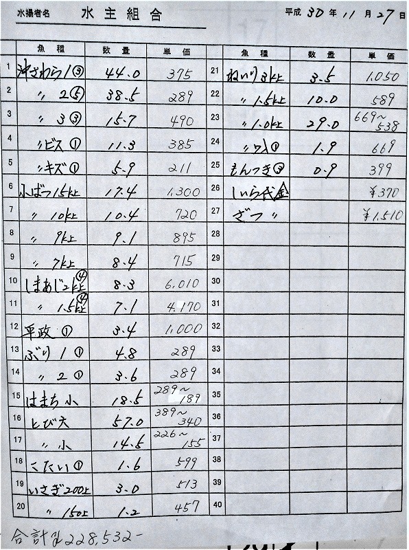 古満目漁港落札価格 | 2018.11.28 Wed 09:48