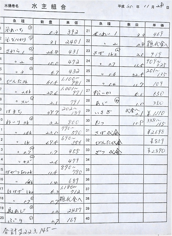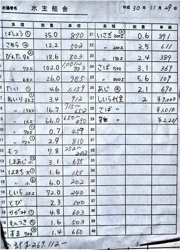 古満目漁港落札価格 | 2018.11.29 Thu 17:10