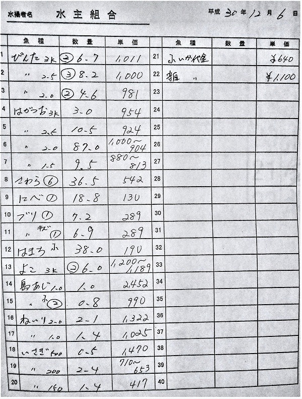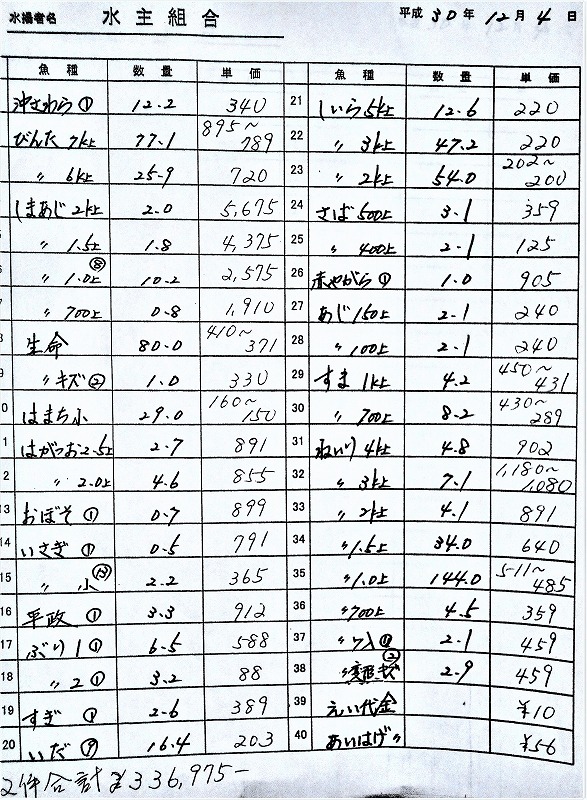 古満目漁港落札価格 | 2018.12.15 Sat 20:38