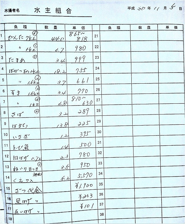 古満目漁港落札価格 | 2018.11.30 Fri 22:36