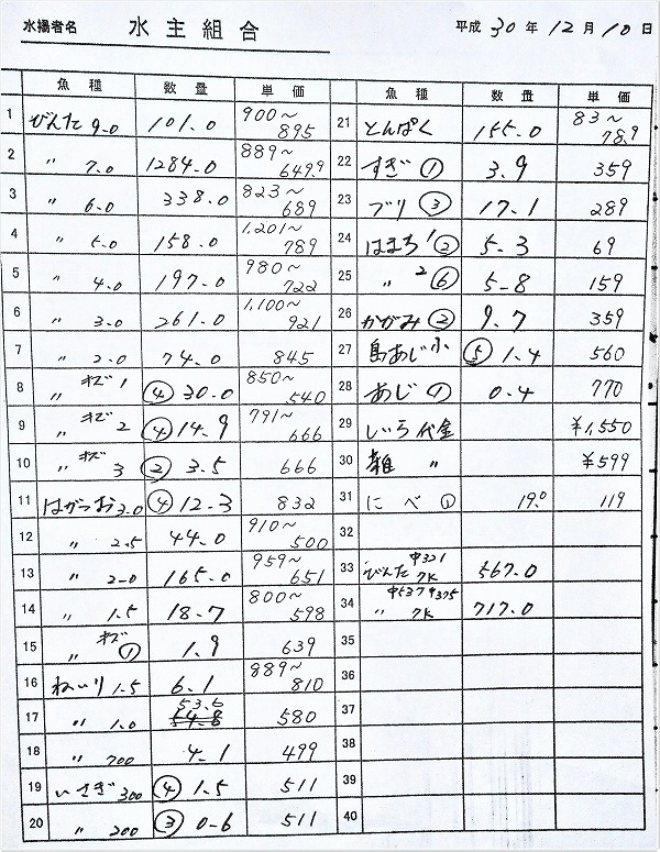 古満目漁港落札価格 | 2018.12.04 Tue 09:52