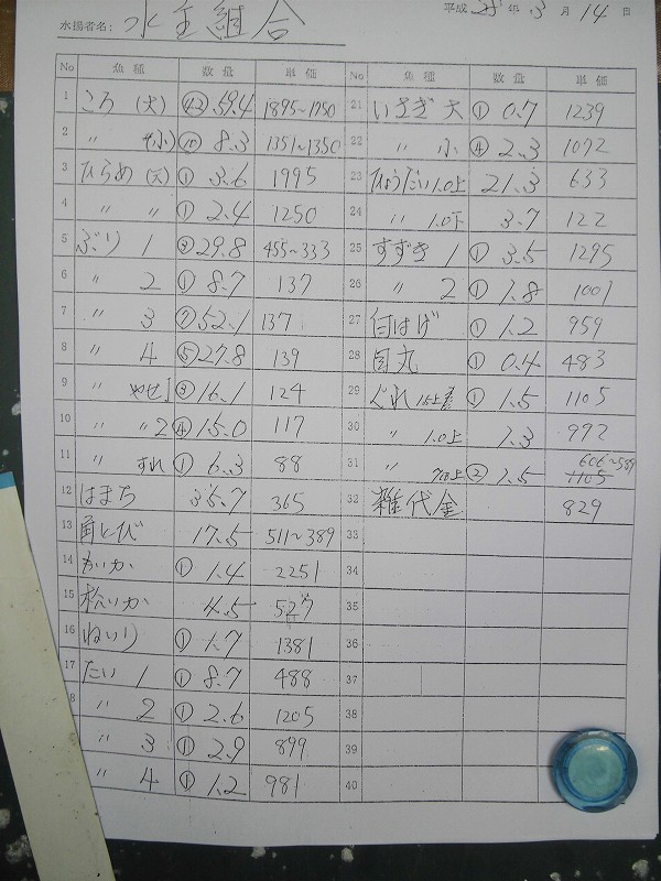 古満目漁協落札価格 | 2016.03.14 Mon 19:17