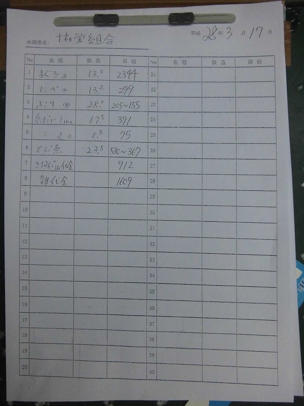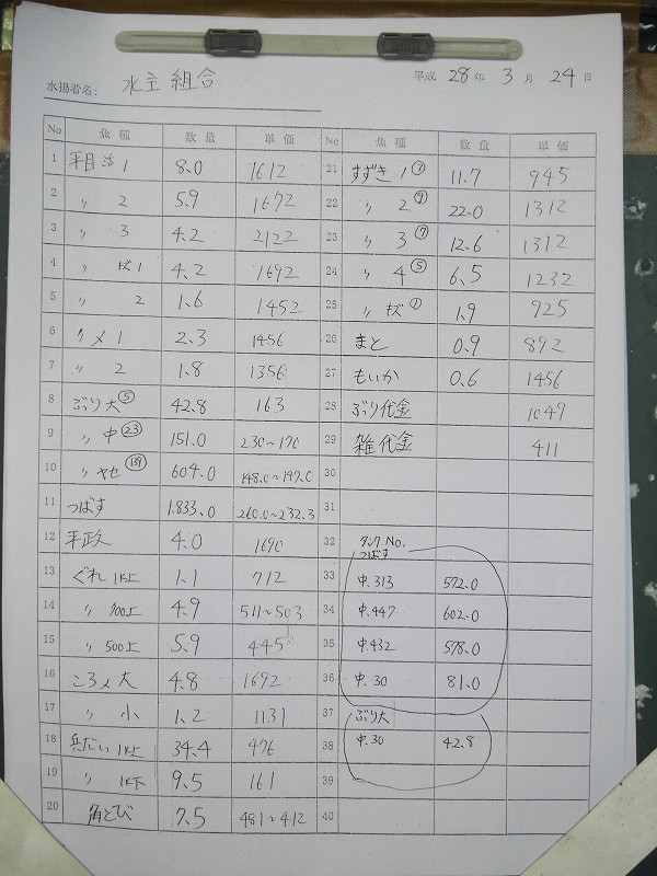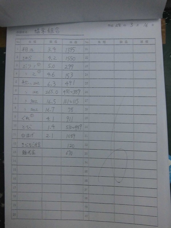 古満目漁協落札価格 | 2016.03.15 Tue 22:11