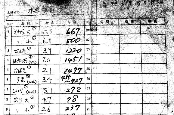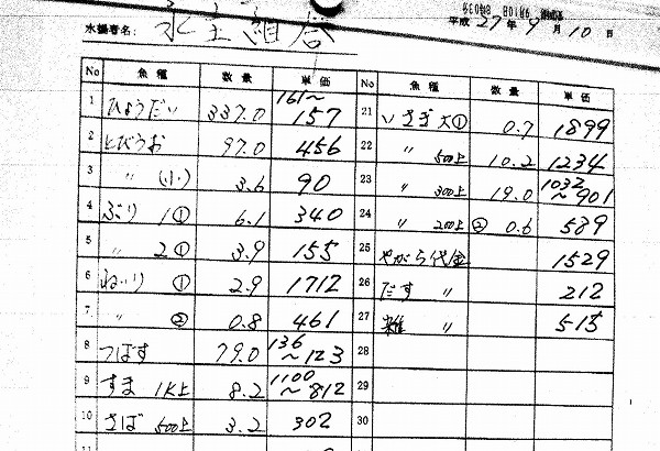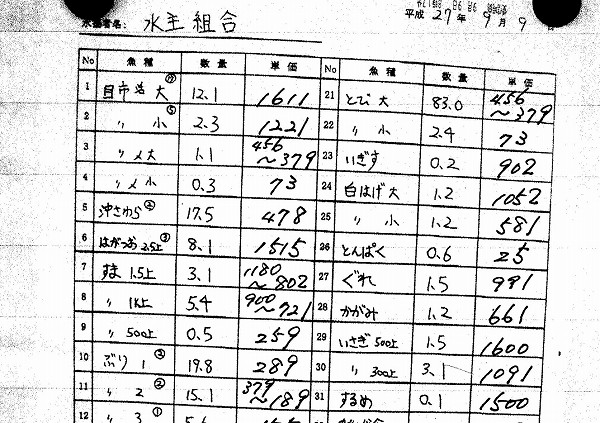 古満目漁協落札価格 | 2015.09.04 Fri 07:04