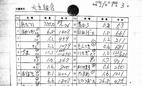 古満目漁協落札価格 | 2015.08.20 Thu 18:23