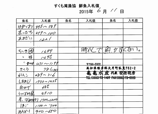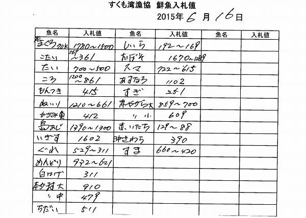 古満目漁協落札価格 | 2015.06.15 Mon 18:06