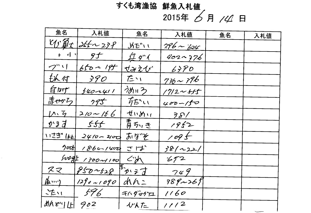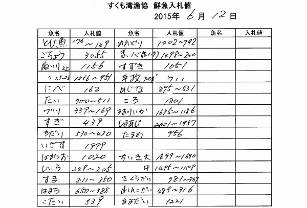 古満目漁協落札価格 | 2015.06.13 Sat 06:02