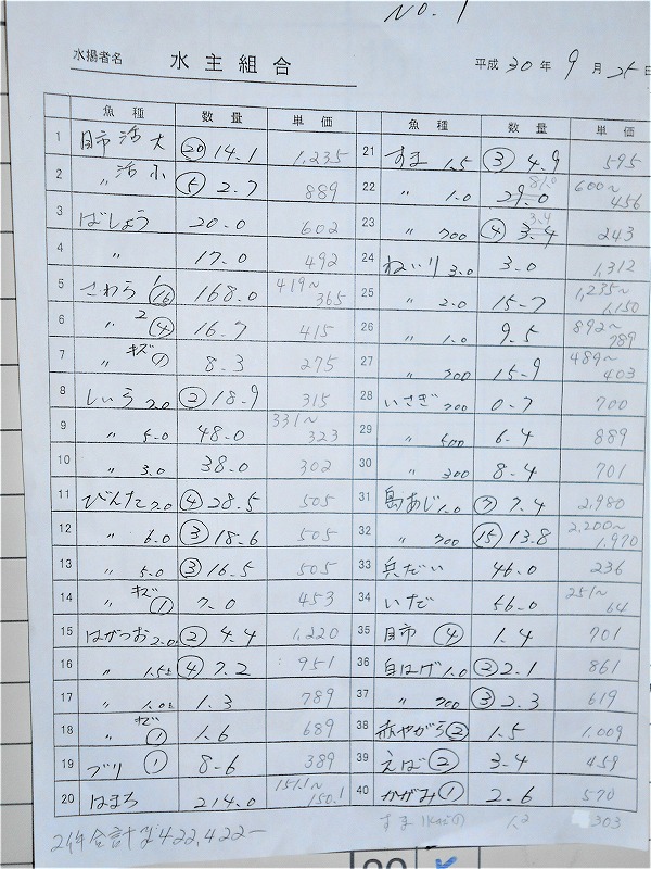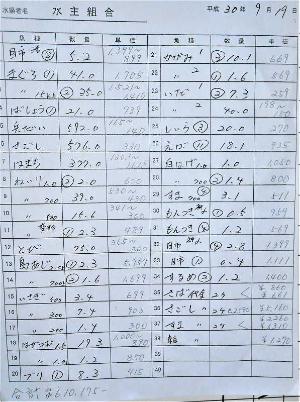 古満目漁港落札価格 | 2018.09.22 Sat 20:37