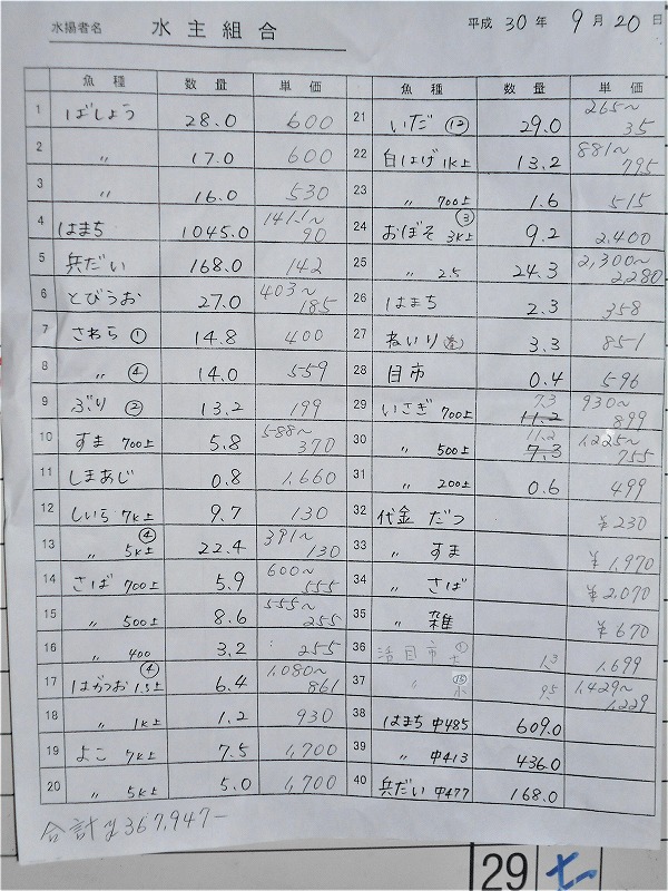 古満目漁港落札価格 | 2018.09.20 Thu 16:11