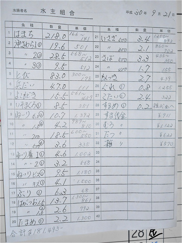 古満目漁港落札価格 | 2018.09.21 Fri 23:58