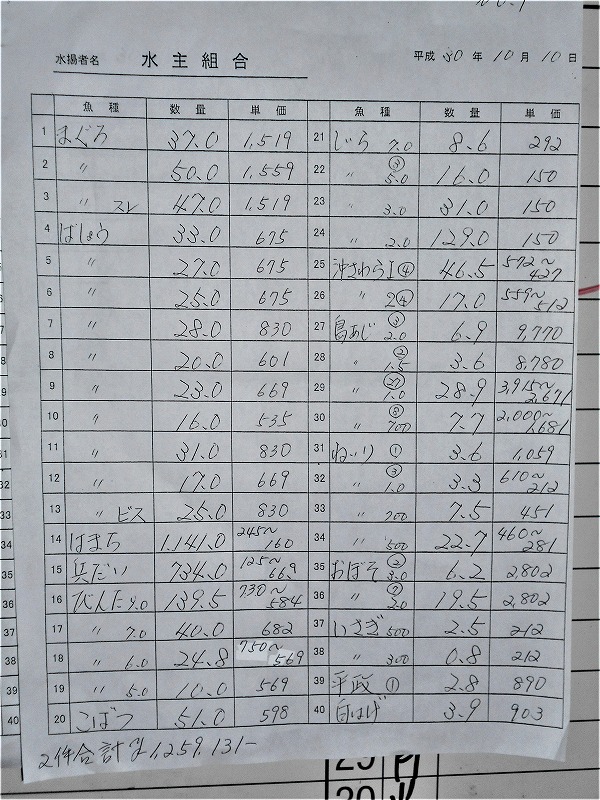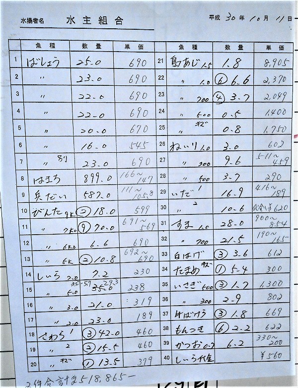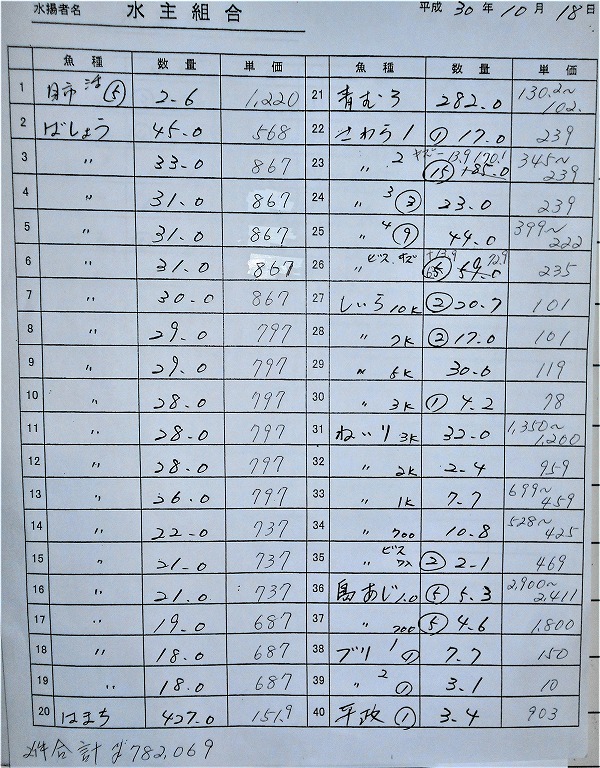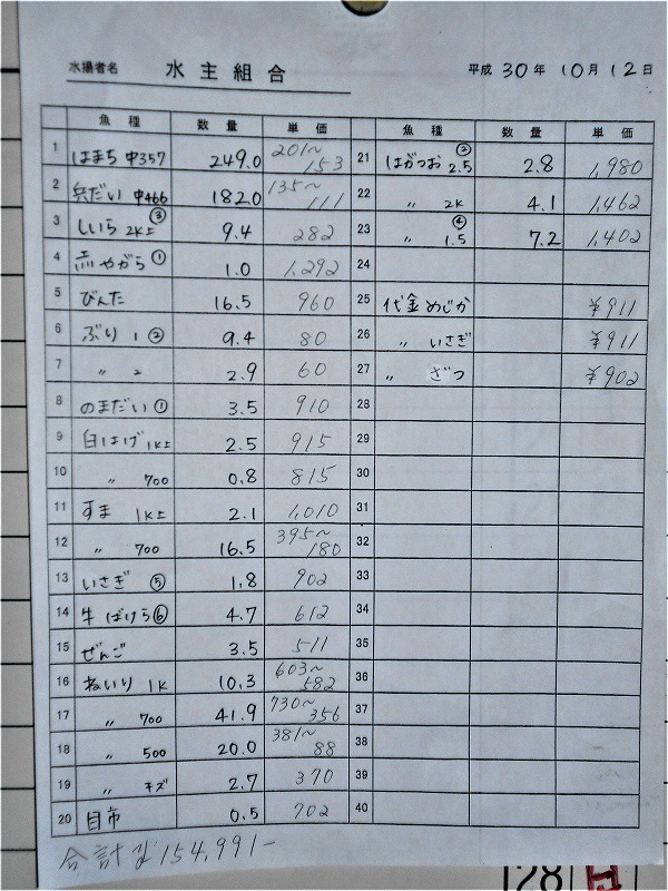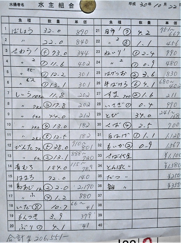 古満目漁港落札価格 | 2018.10.13 Sat 22:43