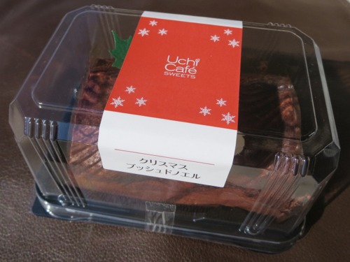 ローソン Uchi Cafe クリスマス ブッシュドノエル525円/645kca フランス語でノエルが「クリスマス」、ビュッシュは「木、丸太」で「クリスマスの薪」の意。その名の通り薪(または木の切り株)の形をしている。出典: フリー百科事典『ウィキペディア(Wikipedia)』 昔はこんなのなかったけど、最近よく見かけますね〜 (=^_^=) JUGEMテーマ:クリスマスケーキ