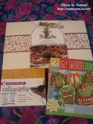 JUGEMテーマ:クリスマスプレゼント 二日ほど遅れて、NYの兄宅からクリスマスプレゼントが届きました。 下段左は息子向け「カリグラフィーテキストと万年筆のセット」 いち時期、カリグラフィーの練習をしていた私♡ 息子から奪い取ってしまいそう〜^^; 下段右は娘宛ての「手作りクッキーセット」 カラフルなスプレーがた〜くさん入ってました。 デコレーションが楽しそうです。 上段はパパ宛て?家族向け?「トリュフチョコレート」 大量です。嬉しいです♡ そして私にはお花柄の「パレオ」 ...