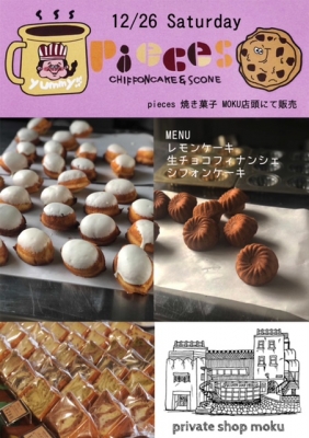 JUGEMテーマ:バザー、イベント、フリーマーケット いよいよ今年も残りわずかとなりました。 あっという間の12月・・MOKUの今年の営業も、あと4日です。 今年の最後に pieces さんの焼き菓子販売を行います。 12/26 土曜日 12時から MOKU店内にて販売です。 とても人気のお菓子屋さんですので、ぜひぜひ、ご来店くださいね。 ※コロナ感染症予防の為、ご入店の際はマスクの着用をお願いいたします。