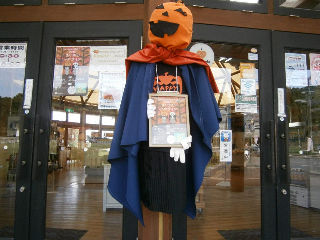 JUGEMテーマ:バザー、イベント、フリーマーケット 10月21日(日)さいかいハロウィン開催! みかんドームの入り口には、ハロウィン仕様のかかしが 笑顔でお出迎え! 時間 10:00〜16:00 会場 みかんドーム前芝生広場・周辺各店舗 アイディアを生かした仮装をして来てくださいね! スタッフ一同皆様のお越しをお待ちしています。