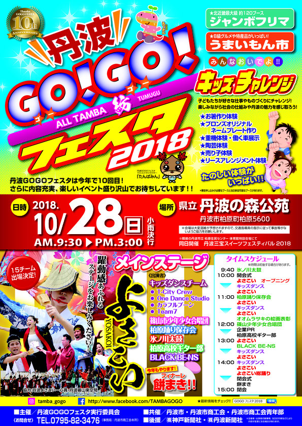 JUGEMテーマ:バザー、イベント、フリーマーケット 「丹波GOGOフェスタ」は!!!! “丹波の魅力を全国に伝えよう”をテーマに市内企業などが一堂に会し、展示、体験型のイベントなどが行われます。 100ブースのフリーマーケットや60ブースの飲食、物産のブースが並び、丹波の味覚を堪能、掘り出し物を見つけたりと子どもから大人まで楽しめるイベントです!!!!! 開催日:平成30年10月28日(日)10:00〜15:00 (雨天決行) 場所:丹波の森公苑 (兵庫県丹波市柏原町柏原5600...