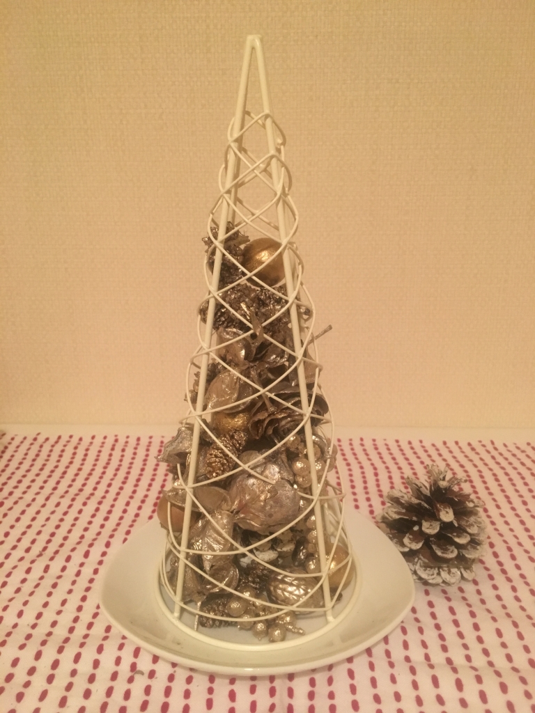 長年使ってきた小さなガラスのツリーは、去年掃除の時不注意で割ってしまいました(;_;) 今年の玄関のツリーはどうしようか考えて… 去年までとは同じデザインは見つかりません。 そもそも大阪から撤退したお店だったし。 なので違う感じのツリーにしてみました。 同じような感じでお店にディスプレイされていたので、材料を買ってまねっこ♪ 金色のトナカイ&ソリの御者は、今年の干支の戌さんです。 JUGEMテーマ:クリスマス &nb...