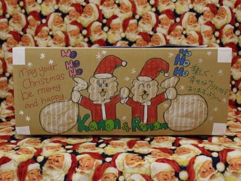お買い物いただいた商品をクリスマスボックス(イラスト描いただけですが)にてお届け。 メリークリスマス! Kanon & Renon