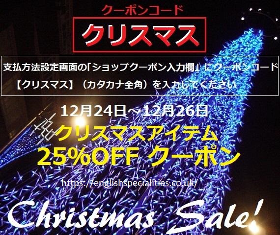 JUGEMテーマ:クリスマス ✿クリスマスセール開催のお知らせ✿ 今日はクリスマスイブですね🎄 本日はクリスマスセールのお知らせです。 ★★★★★★★★★★★★★★★★★★★★★★★★★★★★ 【クリスマスセール 25%OFFクーポン】 クーポンコード「クリスマス」(カタカナ全角入力) (2017年12月24日〜26日) ★★★★★★★★★★★★★★★★★★★★★★★★★★★★ 本日24日より26日までの3日間、クーポン入力でスパイス紅茶やクリスマスクッキー、 クリスマスグッズをお得にお買い物していただけま...