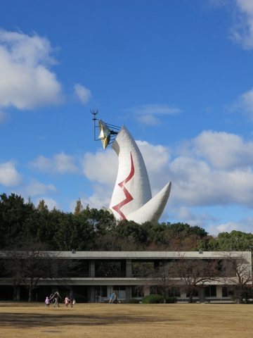 先日お客さんと写真を見ながら「想像よりでかいね」って話になったので、こんな角度の太陽の塔も載せときます。建物、人間、樹木が写る、お気に入りの撮影スポットです。