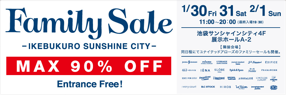 JUGEMテーマ:オシャレ大好き JUGEMテーマ:オシャレ★大好き ↓ブログ村参加中です☆ 応援クリックをぜひ!!! にほんブログ村 JUGEMテーマ:何でも激安で買っちゃえ! JUGEMテーマ:ファッション このお得情報お伝えするの忘れてた〜!!!! 今日1月30日と、31日に池袋サンシャインシティにて スピック&スパンや、ジャーナルスタンダード、IENAなどの ブランドが一堂にかいする『BAYCREWS GROUP』の ファミリーセールが開催されるんです!!!! いつもはPASSが必要...