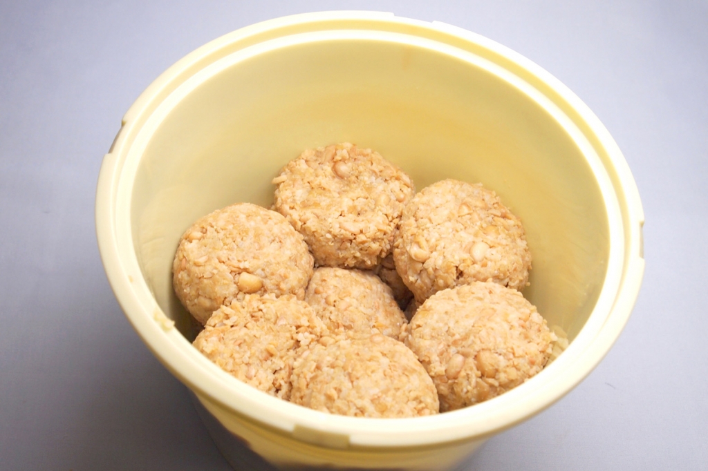 【商品情報】こんにちは!味噌専門店 坂本商店です。 味噌仕込みキットの味噌づくり工程の詳細説明です。 今日は第3段階の、桶に詰める、味噌の保存、熟成などの段取りです。 大豆と塩麹、タネ味噌を混ぜ合わせたものを桶に詰める工程です。 桶は保存用に使用しますので必ず殺菌してくださいね。 混ぜ合わせたものはおにぎりくらいのサイズの団子状の味噌玉を作ります。 味噌玉の中の空気をぬくために桶に叩きつけるようにして詰めていきます。 桶の中の味噌も空気...