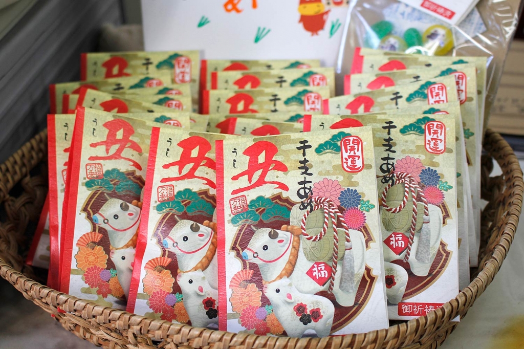 【商品情報】こんにちは!味噌専門店 坂本商店です。 クリスマスもだいぶ近づいてきましたが、そろそろ新年の準備も始める頃合いになってきました。 当店にも新年を感じさせる商品が入荷してきました。 来年度の干支の牛(丑)の絵が描かれた干支飴です。 中には牛が描かれた飴と松の形の飴がそれぞれ2個づつ入っています。 御祈祷済みの縁起のいい飴です。ちなみにおみくじも入っていますので、新年の運試しもできます。
