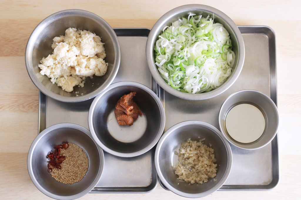 【実験レシピ情報】こんにちは!味噌専門店 坂本商店です。 寒くなってきたこの時期にネギと生姜でからだが温まるレシピです。 おからを使った卯の花です。 材料: ねぎ(みじん切り) 1本 おから 80g 生姜(みじん切り) 15g ごま 小1 だし汁 大2 味噌 大1(今回は11月のブレンド味噌) 酒 大1 みりん 大1 唐辛子 少々 *写真ではだし汁、酒、みりんは混ぜてあります。