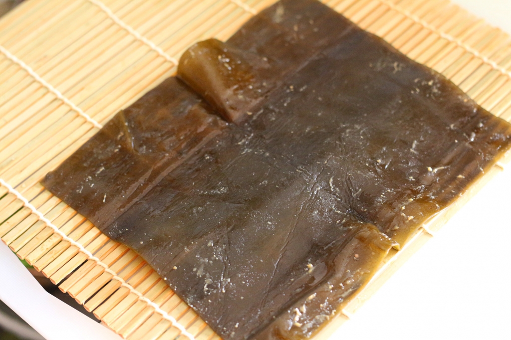 【実験レシピ情報】こんにちは!味噌専門店 坂本商店です。 今日は昆布の味噌漬けを海苔のように使った味噌昆布の巻き寿司です。 材料:1本 お刺身(今回はアジのたたき) 昆布の味噌漬け 巻けるに大きさにカット 酢飯 お茶碗半分くらい 薬味等