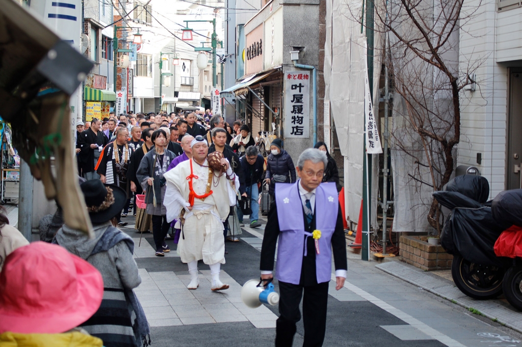 【新井薬師情報】こんにちは!味噌専門店 坂本商店です。 先日は節分でした。新井薬師も梅照院で豆まきのイベントが行われました。 中野サンプラザで岩手県の鹿(しし)踊りの奉納の後、中野サンモール、中野ブロードウェイ、薬師あいロードを通って、梅照院までお練り行列があり、本堂へ向かいます。 坂本商店 中野営業所のお店の前をお練り行列が通る風景は圧巻でした。