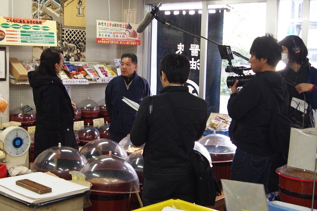 【メディア情報】こんにちは!味噌専門店 坂本商店です。 先日、お店に日経・TBSスマートメディアが製作・放送するchnnel japan(チャンネルジャパン)という海外向け情報番組の取材が来ました。 主にシンガポールを中心に東南アジアで放送されている英語版の番組だそうです。 聞いたところ「CNBC Asia」(シンガポール)「METRO TV」(インドネシア)「Nation TV」(タイ)などで放送され、USTREAMでも見られるそうです。