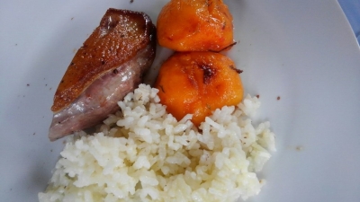 JUGEMテーマ:古道具*レトロ雑貨*こども服*ハンドメイド*アンティーク*古本*古着*骨董*その他雑貨などのお店情報 こんにちは。 トリコロジール店長・あきちゃんです。 ひさしぶりの更新ですが、フランス旅行記 です、えっ、まだやってるの!?(笑) 今日はホストファミリーの「食」について 鴨に桃、つけあわせに季節の果物が合う。 モッツレラチーズのサラダ、太陽いっぱい浴びた トマトはビネガーなし。 いつもたのしみにしている鳥獣類の保存食。 私の留学中も、豚丸一匹...