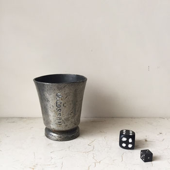 使い込まれて、深みが増したアイアンのカップ。 正面には名前が刻まれ、味わい深い表情をみせています。 フタ付きのガラス製のインクボトル。 鉄のネジフタは、滑り止めの模様がはいった細かな作りとなっています。 安定した重みがあり、フタをはずして季節のお花をかざってみても。 イギリスで見つけたフランス製の小さな蒸発皿。 今でも活動のあるセラミック会社の製品ですが、 こちらは古いものになります。 ロゴマークも当時の...
